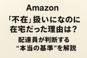 Amazon(アマゾン)で在宅なのに不在扱いになる理由を現役配達員が解説。インターホン反応や置き配不可、再配達履歴など、本当の判断基準と防ぐ方法を詳しく紹介します。