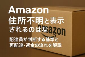 Amazon(アマゾン)で配送状況が「住所不明」と表示されるのはなぜ?配達員が現地で判断する基準や、再配達・返金の流れ、今後防ぐための対策を詳しく解説します。