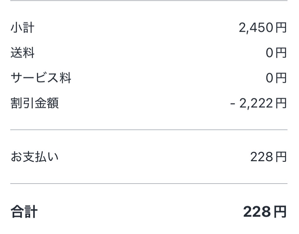 2,222円当選時は約2,500円の注文が実質200円台に。