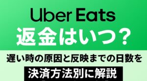 Uber Eatsの配達が遅いときの原因や、注文後のキャンセル方法、返金・クーポンの受け取り方を解説した記事のアイキャッチ画像